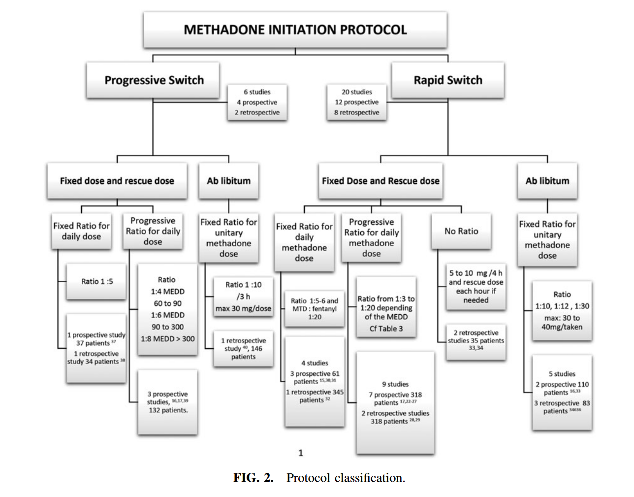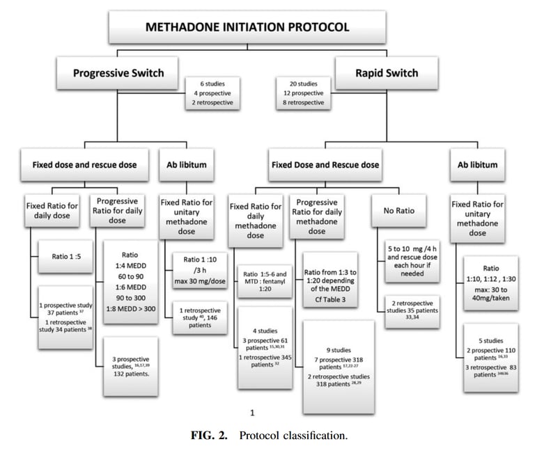 Les protocoles méthadone proposent par évaluation clinique (16 études prospectives et 10 rétrospectives) :